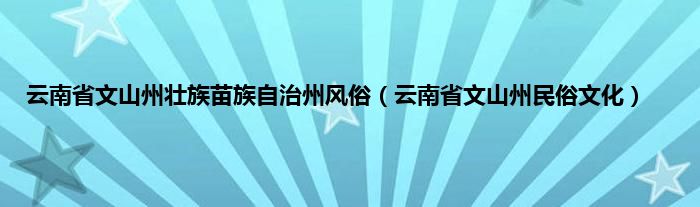 云南省文山州壮族苗族自治州风俗(云南省文山州民俗文化)