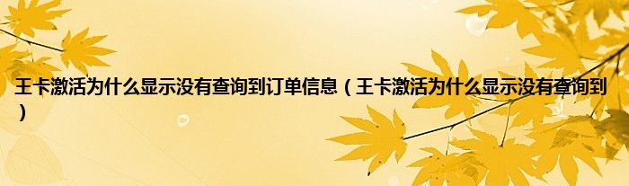 王卡激活为什么显示没有查询到订单信息(王卡激活为什么显示没有查询到)