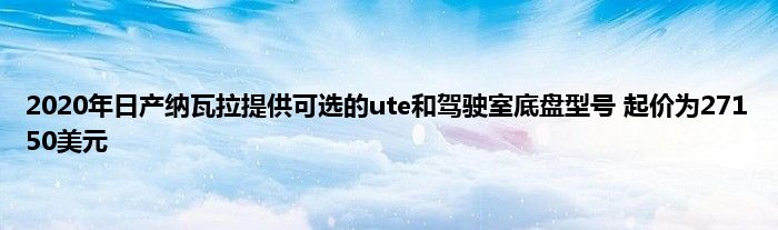 2020年日产纳瓦拉提供可选的ute和驾驶室底盘型号,起价为27,150美元(不含上路费)。在2020 Nissan日产Navara范围是可用的一个选择rear-或四轮驱动,手动或自动变速器,以及驾驶室底盘和UTE体在单,双和King驾驶室配置。