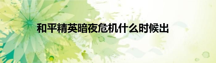 和平精英暗夜危机2.0什么时候出 暗夜危机2.0攻略