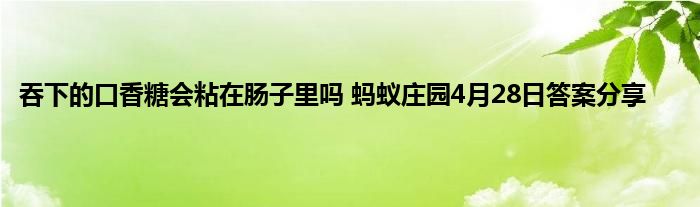 蚂蚁庄园小课堂当中每天都会准时的给玩家带来全新的题目,通过回答这些问题你就可以得到一定数量的饲料奖励,4月28日最新问题已经出来了,今天问题是吞下的口香糖会粘在肠子里吗,不少玩家不知道答案是什么,那下面就让小编给玩家们带来4月28日答案的介绍,希翼能帮到大家。