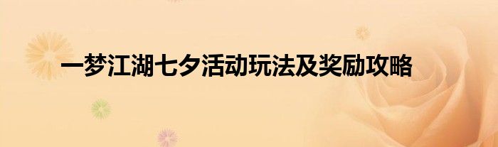以上就是今天给小伙伴们带来的一梦江湖七夕节攻略汇总,希望对大家有所帮助。
