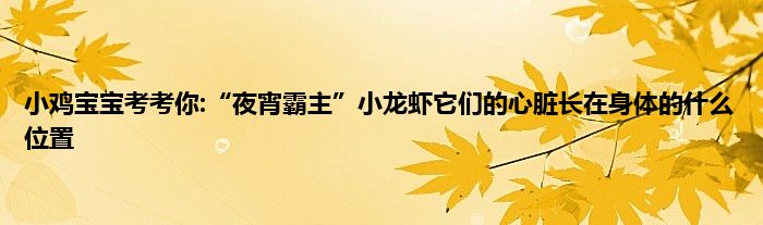 小编今天给各位玩家朋友们带来的是小鸡宝宝考考你:“夜宵霸主”小龙虾它们的心脏长在身体的什么位置,有记得的玩家朋友吗?不记得也没有关系,小编已经帮助大家把小鸡宝宝考考你:“夜宵霸主”小龙虾它们的心脏长在身体的什么位置找了出来,你只需要动动你的小手就可以轻松知道啦,快来瞧一瞧吧。