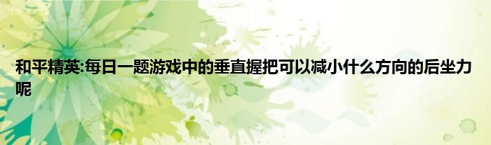 和平精英7月9日每日一题答案问题:游戏中的垂直握把可以减小什么方向的后坐力呢?答题格式:hp+答案选项,例如答案是10,则回复:hp10答案:hp垂直