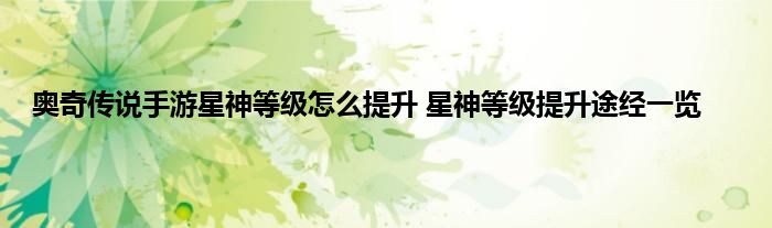 奥奇传说手游星神等级怎么提升,奥奇传说游戏相信很多玩家都已经入坑了,然而很多玩家对于星神等级提升不怎么了解,毕竟星神的猎取难度有是有的,方法也比较多样化,几个重要的猎取提升途径,下面就和蚕豆小编来一起看看吧!