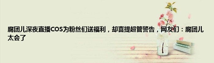超管警告的风波结束之后,腐团儿也是调侃道:本以为深夜会很“安全”的,看来大晚上也不一定啊。至此,腐团儿的“深夜节目”宣告结束。从这次腐团儿的COS上看,她的确是非常宠粉的一位主播。不过在为粉丝们给出福利的同时,腐团儿自己还是要珍惜一下直播间,幸免和水友们的“天人两隔”。