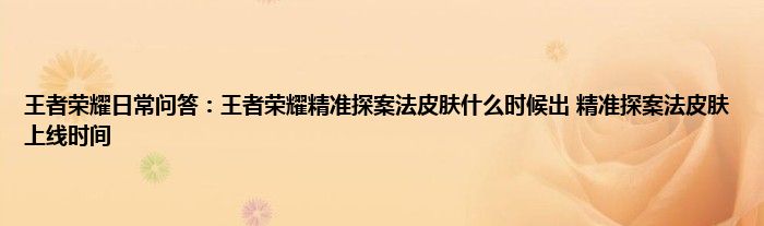 今天来聊聊关于王者荣耀日常问答:王者荣耀精准探案法皮肤什么时候出,精准探案法皮肤上线时间的文章,游戏是很多人的选择,但是游戏玩多了也会身心疲惫,现在就为大家来简单介绍下王者荣耀日常问答:王者荣耀精准探案法皮肤什么时候出,精准探案法皮肤上线时间,希望对各位小伙伴们有所帮助。