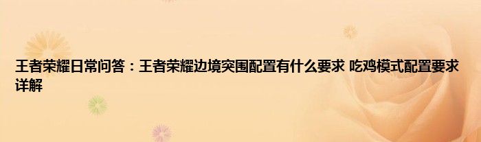 问:王者荣耀边境突围配置有什么要求?