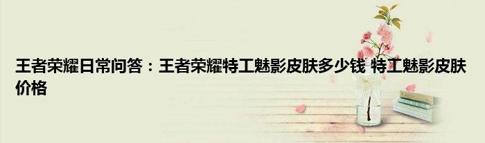 王者荣耀日常问答:王者荣耀特工魅影皮肤多少钱特工魅影皮肤价格