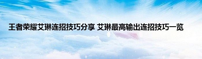 王者荣耀艾琳连招损害非常高,延续的技能+普攻可以直接秒到脆皮英雄,很多玩家都还不知道艾琳的连招技巧,那么王者荣耀艾琳最高输出的连招技巧是什么呢?蚕豆小编为您带来王者荣耀艾琳连招技巧顺序公式口诀教学。