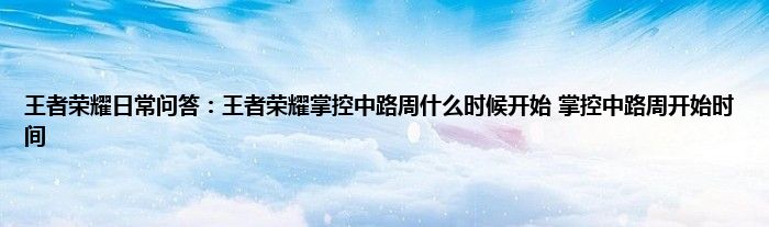 王者荣耀掌控中路周开始时间: