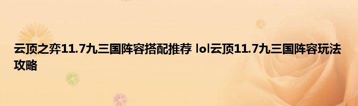 云顶之弈11.7版本后有很多的新的阵容都得到了崛起,其中有个九三国的阵容,非常受到玩家欢迎,强度不错,上分吃鸡率都很高,很多玩家在问这套阵容怎么搭配,怎么运营,面对各种阵容用什么思路去玩,下面就来一起来看看具体的攻略吧。