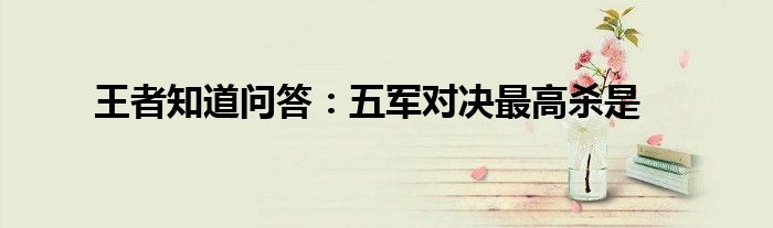 小编今天给各位玩家朋友们带来的是王者知道问答:五军对决最高杀是,有记得的玩家朋友吗?不记得也没有关系,小编已经帮助大家把王者知道问答:五军对决最高杀是找了出来,你只需要动动你的小手就可以轻松知道啦,快来瞧一瞧吧。