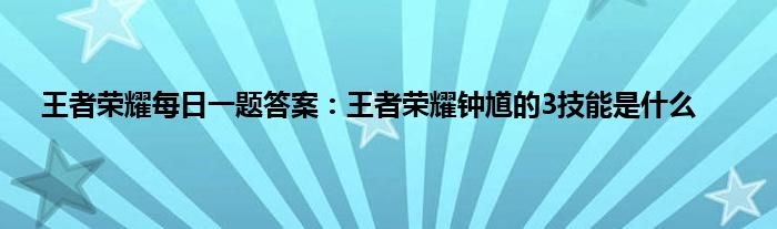 以上就是王者荣耀每日一题答案:王者荣耀钟馗的3技能是什么的推荐,相信通过王者荣耀每日一题答案:王者荣耀钟馗的3技能是什么这篇文章能帮到你,也欢迎对游戏很感兴趣小伙伴们一起来探讨。