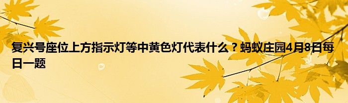 蚂蚁庄园4月8日的问题已经出来了,和复兴号有关,大家如果坐过复兴号会发现座位上有个指示灯,有时候会亮黄色,那么黄色灯亮代表了什么呢,答对可以获得180g小鸡饲料,下面就来跟小编一起来看看详细的答案是什么吧。