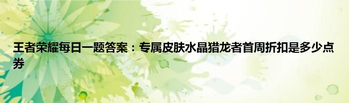 题目:专属皮肤-水晶猎龙者首周折扣是多少点券?