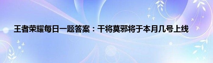 今天来聊聊关于王者荣耀每日一题答案:干将莫邪将于本月几号上线的文章,游戏是很多人的选择,但是游戏玩多了也会身心疲惫,现在就为大家来简单介绍下王者荣耀每日一题答案:干将莫邪将于本月几号上线,希望对各位小伙伴们有所帮助。