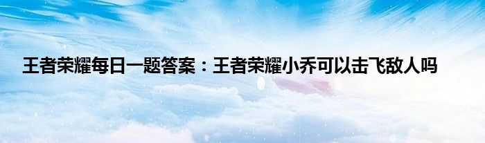 以上就是王者荣耀每日一题答案:王者荣耀小乔可以击飞敌人吗的推荐,相信通过王者荣耀每日一题答案:王者荣耀小乔可以击飞敌人吗这篇文章能帮到你,也欢迎对游戏很感兴趣小伙伴们一起来探讨。