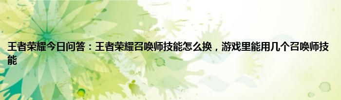 王者荣耀今日问答:王者荣耀召唤师技能怎么换,游戏里能用几个召唤师技能