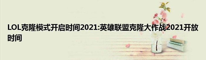 LOL克隆模式今天就要正式开启啦!克隆大作战作为英雄联盟备受欢迎的玩法,每次要开放的时候都有众多玩家期盼着它的到来。克隆模式具体什么时候出?开放到几月几号呢?这就来了解下吧。