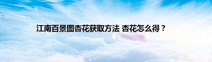 以上就是江南百景图杏花获得方法介绍的内容,希翼对大家有所帮助。