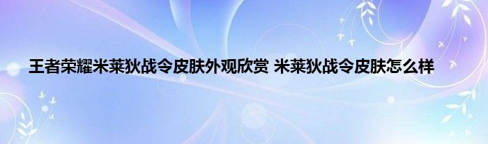 王者荣耀新的皮肤向来是玩家们比较关注的一个东西,很多玩家都想要在获得自己喜欢的英雄的皮肤,在新赛季当中战令皮肤已经给玩家带来了,其中就有一款米莱狄战令皮肤。相信很多玩家对于这个皮肤都非常的感兴趣。那下面就让小编给玩家们带来这个皮肤的外观观赏,一起来看下吧。