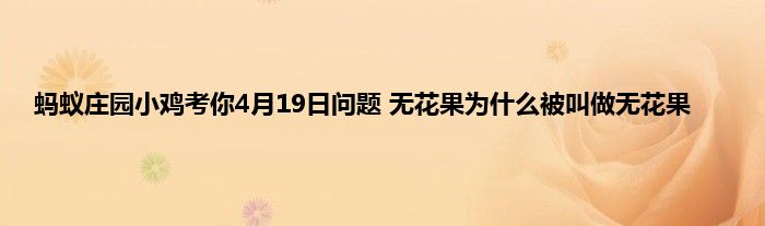 蚂蚁庄园小鸡考你4月19日问题,无花果为什么被叫做无花果,欢迎大家来到这里,能进来的小伙伴都有玩蚂蚁庄园的,支付宝蚂蚁庄园每天都会在小课堂更新一道题目,答对即可领取小鸡饲料180G,4月19日蚂蚁庄园问题是:无花果为什么被叫做无花果?很多小伙伴都不知道无花果为什么被叫做无花果这个问题的答案是什么,那么小编就为大家分享下4月19日蚂蚁庄园课题问题的答案,希望对大家有所帮助!