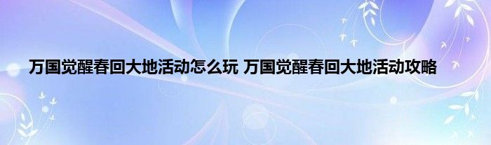 万国觉醒游戏中的春回大地活动今日已经正式上线了,活动中可以通过道具兑换出丰厚奖励,很多玩家都想知道万国觉醒春回大地怎么玩,那么万国觉醒春回大地活动到底怎么玩呢?下面就随蚕豆小编一起来看一下吧!