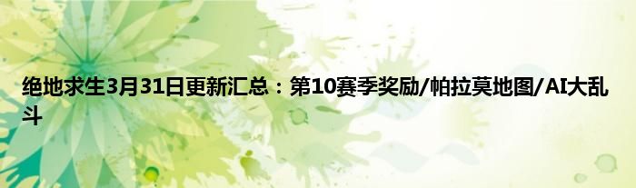 绝地求生3月31日更新汇总,绝地求生在3月31日进行了更新,这次更新带来了很多的新内容新玩法,以及武器调整和系统优化,其中还有第10赛季的奖励更新,帕拉莫地图回归等内容,还是很多的,下面就来跟着小编一起来了解一下具体的更新内容。