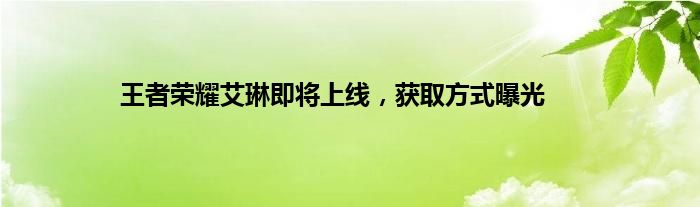 王者荣耀艾琳即将上线,获取方式曝光
