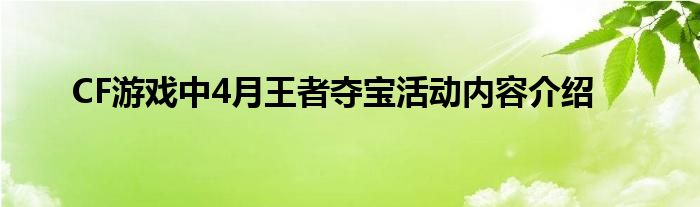 以上就是CF游戏中4月王者夺宝活动内容介绍的推荐,相信通过CF游戏中4月王者夺宝活动内容介绍这篇文章能帮到你,也欢迎对游戏很感兴趣小伙伴们一起来探讨。