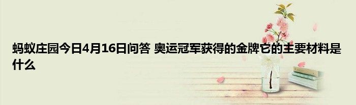 欢迎大家来到这里,能进来的小伙伴都有玩蚂蚁庄园的,支付宝蚂蚁庄园每天都会在小课堂更新一道题目,答对即可领取小鸡饲料180G,4月16日蚂蚁庄园问题是:奥运冠军获得的金牌它的主要材料是什么?很多小伙伴都不知道奥运冠军获得的金牌它的主要材料是什么这个问题的答案是什么,那么小编就为大家分享下4月16日蚂蚁庄园课题问题的答案,希望对大家有所帮助!