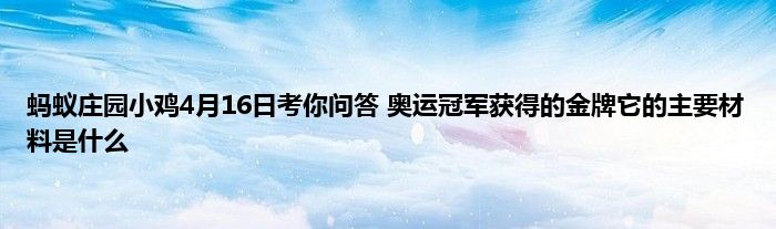 以上就是蚂蚁庄园小鸡4月16日考你问答 奥运冠军获得的金牌它的主要材料是什么的推荐,相信通过蚂蚁庄园小鸡4月16日考你问答 奥运冠军获得的金牌它的主要材料是什么这篇文章能帮到你,也欢迎对游戏很感兴趣小伙伴们一起来探讨。