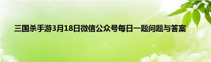 今天来聊聊关于三国杀手游3月18日微信公众号每日一题问题与答案的文章,游戏是很多人的选择,但是游戏玩多了也会身心疲惫,现在就为大家来简单介绍下三国杀手游3月18日微信公众号每日一题问题与答案,希望对各位小伙伴们有所帮助。