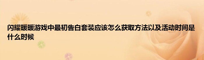 今天弟哥来聊聊一篇关于闪耀暖暖游戏中最初告白套装应该怎么获取方法以及活动时间是什么时候的文章,游戏是很多人的选择,但是游戏玩多了也会身心疲惫,现在就为大家来简单介绍下闪耀暖暖游戏中最初告白套装应该怎么获取方法以及活动时间是什么时候,希望对各位小伙伴们有所帮助。