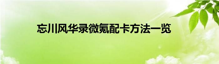 忘川风华录微氪配卡方法