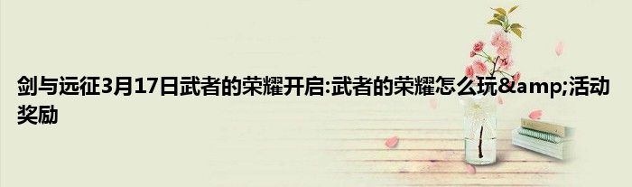 剑与远征3月17日即将迎来新一波活动更新,武者的荣耀开启!通过挑战武者的荣耀,获胜后可以获得奖励的兽牙,兑换专属装备道具、梦境星尘和重铸卷轴等奖励。武者的荣耀怎么玩?这就来抢先了解下吧。