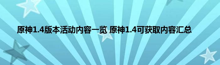 原神1.4版本将在明天正式上线,这次的版本风花的邀约新增添了很多新的内容,有新角色,新武器,此外新的副本和资源也会上线,同时Up池也会更新,很多玩家好奇1.4版本会有什么可获得的内容,下面就跟着小编一起来了解一下吧。