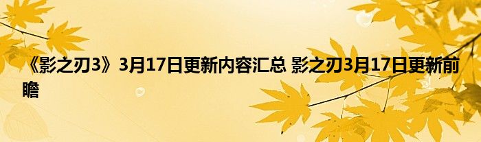 影之刃3 3月17日更新前瞻