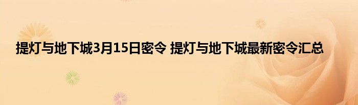 提灯与地下城3月15日密令