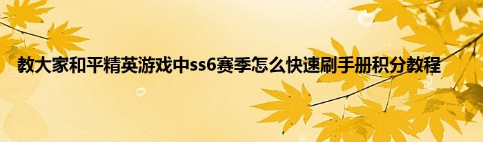 今天弟哥来聊聊一篇关于和平精英游戏中ss6赛季怎么快速刷手册积分教程的文章,游戏是很多人的选择,但是游戏玩多了也会身心疲惫,现在就为大家来简单介绍下和平精英游戏中ss6赛季怎么快速刷手册积分教程,希望对各位小伙伴们有所帮助。