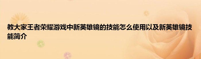 今天弟哥来聊聊一篇关于王者荣耀游戏中新英雄镜的技能怎么使用以及新英雄镜技能简介的文章,游戏是很多人的选择,但是游戏玩多了也会身心疲惫,现在就为大家来简单介绍下王者荣耀游戏中新英雄镜的技能怎么使用以及新英雄镜技能简介,希望对各位小伙伴们有所帮助。