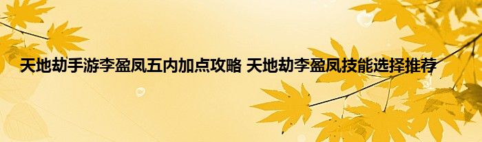 天地劫手游李盈凤五内加点攻略 天地劫李盈凤技能选择推荐