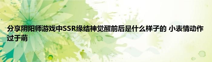 今天弟哥来聊聊一篇关于阴阳师游戏中SSR缘结神觉醒前后是什么样子的 小表情动作过于萌的文章,游戏是很多人的选择,但是游戏玩多了也会身心疲惫,现在就为大家来简单介绍下阴阳师游戏中SSR缘结神觉醒前后是什么样子的 小表情动作过于萌,希望对各位小伙伴们有所帮助。