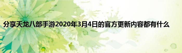 分享天龙八部手游2020年3月4日的官方更新内容都有什么