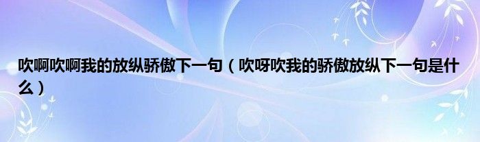 大家好,小科来为大家解答以上问题。吹啊吹啊我的放纵骄傲下一句,吹呀吹我的骄傲放纵下一句是什么很多人还不知道,现在让我们一起来看看吧!