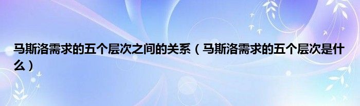 大家好,小科来为大家解答以上问题。马斯洛需求的五个层次之间的关系,马斯洛需求的五个层次是什么很多人还不知道,现在让我们一起来看看吧!