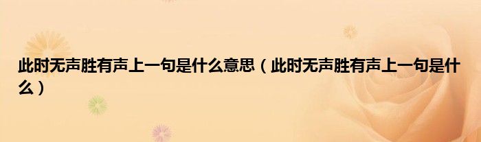大家好,小科来为大家解答以上问题。此时无声胜有声上一句是什么意思,此时无声胜有声上一句是什么很多人还不知道,现在让我们一起来看看吧!