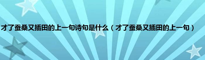才了蚕桑又插田的上一句诗句是什么(才了蚕桑又插田的上一句)