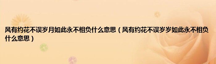 大家好,小科来为大家解答以上问题。风有约花不误岁月如此永不相负什么意思,风有约花不误岁岁如此永不相负什么意思很多人还不知道,现在让我们一起来看看吧!